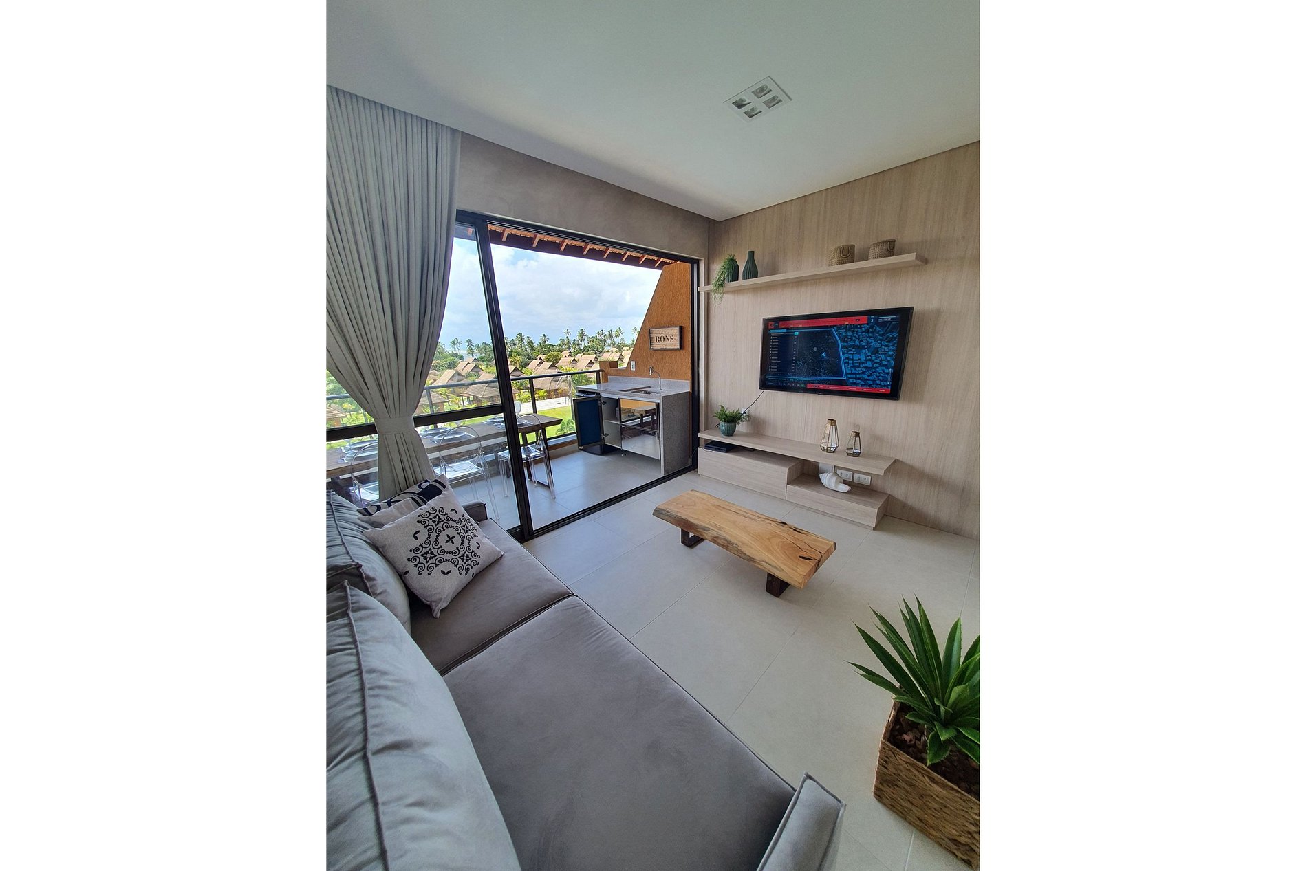 Nosso espaço além de ter uma vista incrível, possui uma varanda bem ampla e agradável. O flat é super aconchegante e equipado com tudo que você precisa para tornar sua estadia muito confortável.